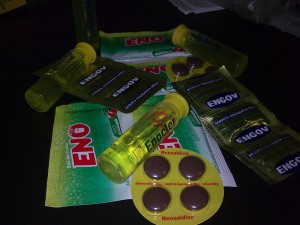 Decidimos já na primeira noite, experimentar chopps diversos. De cervejarias e composições diferentes. Claro que não esquecemos do santo Engov, todos os três dias, antes E depois da festa. (Veja a foto do “kit sobrevivência” abaixo)
